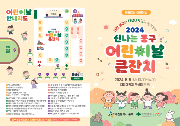 [충청뉴스 박영환 기자] 대전 동구(구청장 박희조)는 5월 5일 10시 대전대학교 맥센터 실내체육관에서 제102회 어린이날을 맞아 “내일의 소중한 꿈을 함께 키우는, 신나는 동구 어린이날 큰잔치”를 개최한다고 29일 밝혔다.