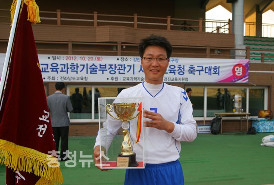 충남교육청(교육감 김종성)이 지난 20일 전남 강진군에서 개최된 제15회 교육과학기술부장관기 전국 시도교육청 교직원 축구대회에서 우승을 차지했다.
