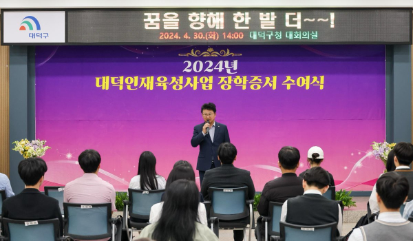 최충규 대덕구청장은 “대덕인재육성사업은 단순히 장학금 지원의 의미를 넘어 지역사회에 대한 관심과 공동체의 가치를 담고 있어 의미가 크다”라며 “청소년에게 따뜻한 관심을 가지고 지역의 인재 육성을 위해 매년 장학금을 지원해 주시는 후원처에 감사드리고, 전달한 장학금이 우리 대덕의 청소년에게 꿈을 이루기 위한 소중한 밑거름이 되길 바란다”라고 말했다.