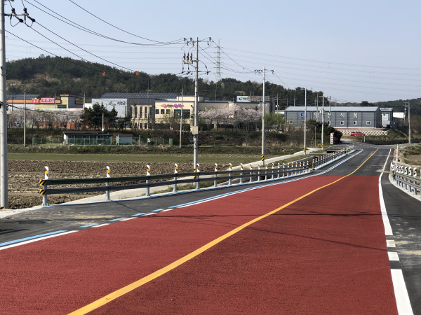 이에, 군은 설계, 공사 등 총사업비 6억원을 투입해 2023년 5월 착공에 들어갔으며, 왕복2차선에 인도를 확보해 지역주민들에게 쾌적한 교통환경제공과 관내 사업자들에게 편리를 제공했다.
