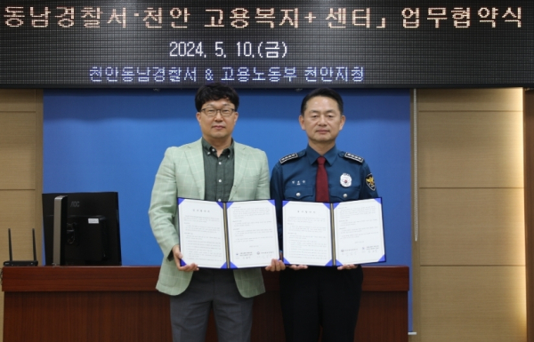[충청뉴스 박동혁 기자] 천안동남경찰서는 10일 경찰서 중회의실에서 천안고용복지플러스센터와 범죄피해자 취업·자립지원을 위한 업무협약을 체결했다고 밝혔다.