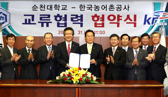 ▲ 박재순 사장과 송영무 순천대학교 총장이 양 기관의 '상호 교류협력 양해각서 체결식'을 가졌다.