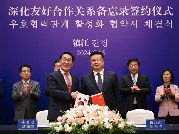 군에 따르면 홍성군과 우호교류도시인 중국 전장시가 15일 우호협력관계 활성화 협약을 체결하며 상호 교류와 협력을 더욱 공고히 했다.