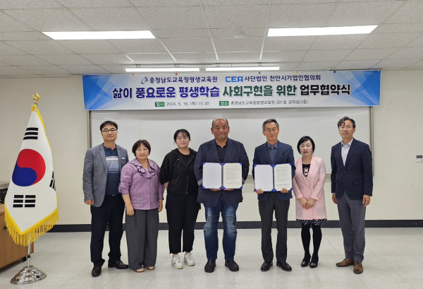 [충청뉴스 권상재 기자] 충청남도교육청평생교육원은 지난 16일 평생교육원 2층 강의실에서 (사)천안시기업인협의회(회장 최계열)와 업무협약을 체결했다.