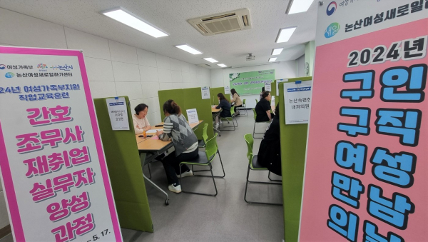 [충청뉴스 논산 = 조홍기 기자] 논산여성새로일하기센터(관장 임정란)는 16일과 17일 양일간 직업교육훈련 수료생 대상으로 ‘2024년 구인·구직 여성 만남의 날’ 채용 행사를 개최했다.