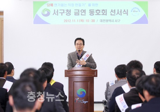 이에 따라 서구는 지난 1일 구청 대회의실에서 담배 연기 없는 깨끗한 직장 만들기 및 직원들의 건강증진을 위해 금연동호회 회원 100여명이 참여한 가운데 ‘금연선서식’을 가졌다.