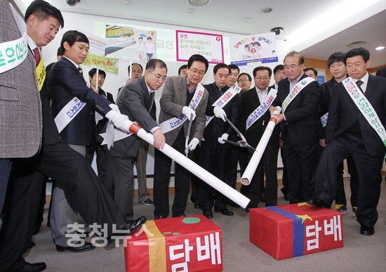 금연선서식은 담배연기 없는 깨끗한 직장 만들기 조성을 위한 금연 결의자 대표의 선서문 낭독, 금연서약서 서명, 금연결의 퍼포먼스 순으로 진행돼 평생 금연할 것을 다짐했다.