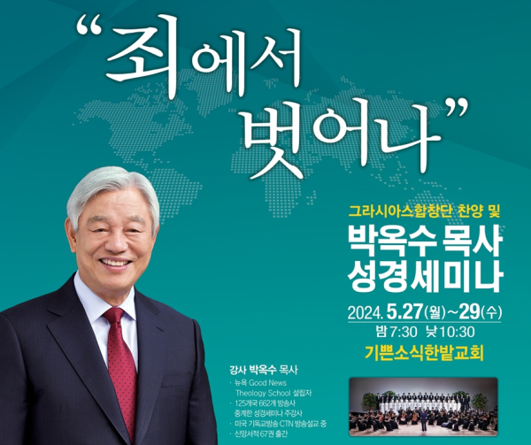 KCA한국기독교연합이 주최하고 기쁜소식선교회가 주관하는 박옥수목사 성경세미나는 27일 저녁부터 3일간 오전 10시30분과 저녁 7시30분, 하루 두 차례, 총 5회 개최되며 유튜브 채널 '굿뉴스티비'에서 생중계된다.