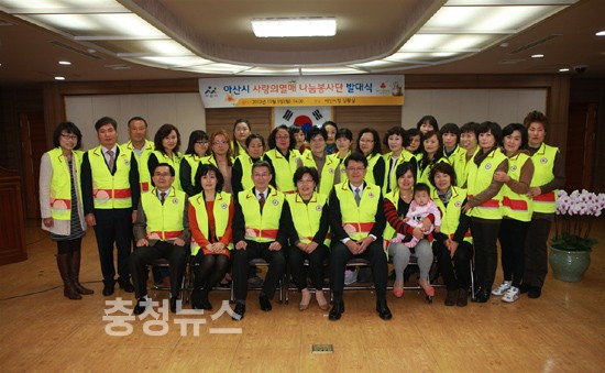 아산시 사랑의 열매 나눔봉사단(단장 오연택)은 지난 5일 아산시청 상황실에서 복기왕 아산시장, 신한철 충남공동모금회장을 비롯해 50여명이 참석한 가운데 발대식을 가졌다.