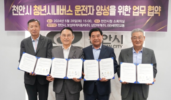 시는 ▲보성여객자동차 ▲삼안여객 ▲새천안교통 등 지역 시내버스 3개 사와 청년 시내버스 운전자 양성을 위한 업무협약을 체결했다고 29일 밝혔다.