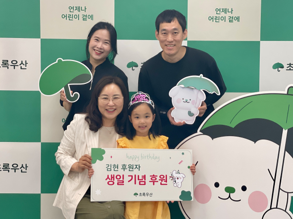 초록우산 박미애 본부장은 “특별한 날, 기부로 기념하는 김현 어린이와 가족들의 마음이 감동적이다”라며 “도움이 필요한 친구들을 위해 소중히 사용하겠다”라고 감사한 마음을 전했다.