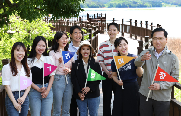 박희조 동구청장(사진 오른쪽 첫번째)과 직원들이 대청호 일원에서 장미원 홍보하는 모습