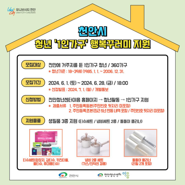 [충청뉴스 박동혁 기자] 충남 천안시 ‘청년센터 이음’이 천안으로 전입한 청년 1인 가구 지원에 나선다.