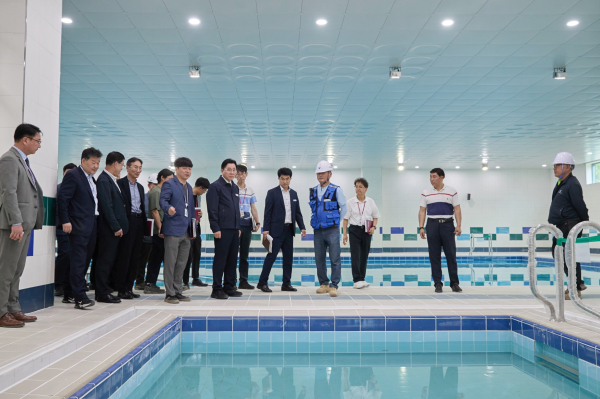박경귀 시장은 지난 7일 현장을 찾아 “환경 유해 물질이 기준치를 초과하지 않도록 내장재 사용에 신경을 쓰고, 특히 수영장은 내부 마감에 더욱 각별한 주의를 기울여 달라”고 당부했다.