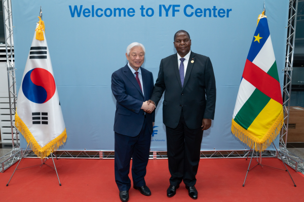 IYF 설립자 박옥수 목사는 2023년 3월, 대통령 초청으로 중아공을 방문해 현지 IYF센터 기공식 등을 투아데라 대통령과 함께한 바 있다.