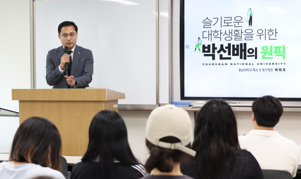 이어 진행된 특강에서는 ‘슬기로운 대학생활을 위한 박 선배의 원픽’이라는 주제로, 대학시절부터 구청장이 되기까지 재미있는 일화들과 구정운영 방식 등 다양한 분야에 대해 진솔한 이야기를 나눴다.