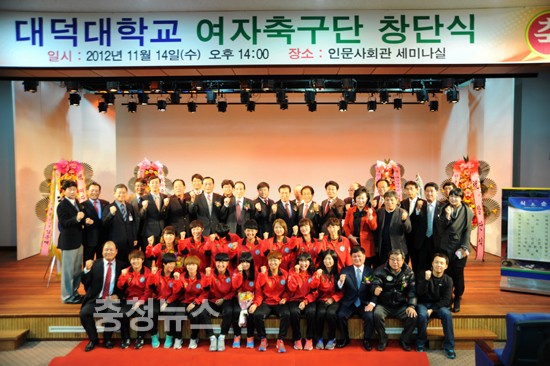 대덕대학교(총장 홍성표)는 공부하는 운동선수를 표방하고 14일 오후 교내 인문사회관 세미나실에서 여자축구부 창단식을 가졌다.