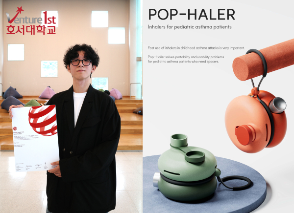 13일 호서대에 따르면 박진환 학생은 소아 천식 환자들이 흡입기 단독 사용 시 어려움을 개선하기 위해 기존 흡입기에 결합하는 스페이서를 일체형으로 처리한 ‘Pop-haler’를 제안했다.