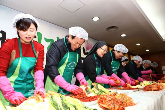한국농어촌공사(사장 박재순)는 15일 경기도 의왕시 본사에서 관내 복지시설원장과 공사 임직원 80여명이 참여한 가운데 김장김치를 담가 지역의 독거노인 및 소년소녀가장, 노인복지시설에 배달했다.