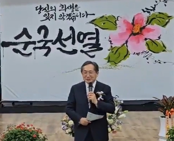 이날 식전 행사로 김순자 캘리디자인연구소 대표가 “당신의 희생을 잊지 않겠습니다. 순국선열”이라는 캘리그라피 퍼포먼스를 선보여 참석자로 부터 감동의 엄지척을 받았다.