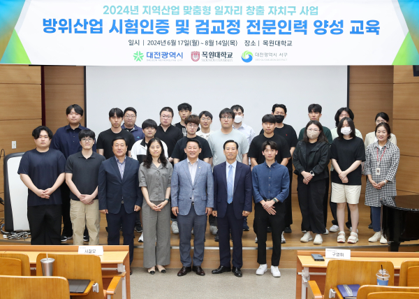 [충청뉴스 박영환 기자] 대전 서구(구청장 서철모)는 지난 17일 목원대학교에서 교육생 20명이 참석한 가운데 ‘방위산업 시험인증 및 교정 전문인력 양성과정’ 개강식을 개최했다고 전했다.