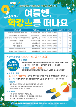 이번 단기 평생교육 프로그램은 시원한 평생교육학습관에서 수강생들이 무더위를 피해 휴식과 치유를 만끽할 수 있는 ‘학캉스(학습관 바캉스)를 떠나요’라는 주제로 진행된다.