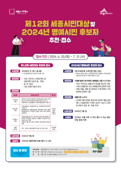 시는 20일부터 내달 31일까지 ‘제12회 세종시민대상’과 ‘2024년 명예시민’ 후보자를 접수한다고 밝혔다.