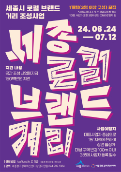 [충청뉴스 최형순 기자] 세종시가 세종을 대표하는 로컬브랜드 거리 조성을 주도할 참여팀을 모집한다.