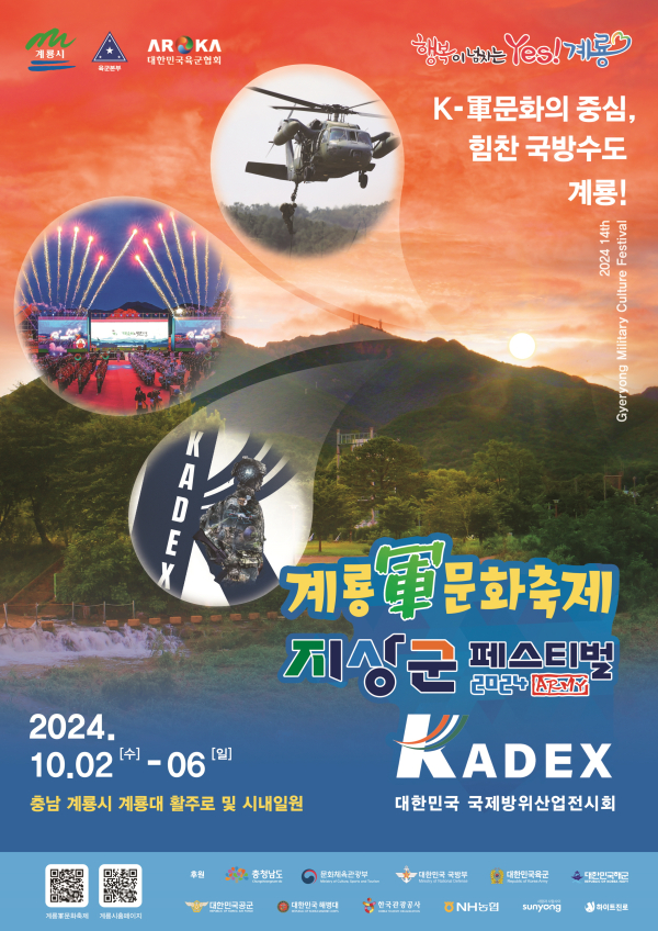 한편 ‘계룡軍문화축제·지상군페스티벌·KADEX2024’는 오는 10월 2일부터 6일까지 5일간 충청남도 계룡대 활주로와 엄사면 일원에서 동시에 개최될 예정이다.