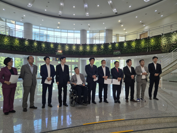 급기야 김 의원을 지지하는 당론파 의원들은 이날 오후 5시경 시의회 로비에서 기자회견을 열어 당론을 위배한 반대파 의원들을 의회 파행 주범으로 지목, 대시민 사과와 시당에 제명을 촉구했다.