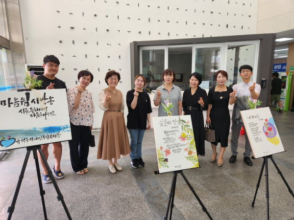 [충청뉴스 최형순 기자] 유성구장애인종합복지관(관장 김영근) 7명의 장애인들이 애송하는 시 작품 7점이 1일 유성구청 1층 로비에 게시돼 잔잔한 감동을 주고 있다.