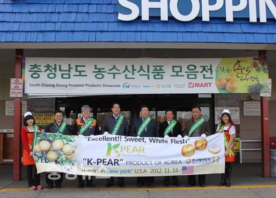 충남농협(본부장 임승한)은 충청남도와 충남 신선농산물(밤,배)을 11월 15일부터 25일까지 2회에 걸쳐 미국 뉴욕시에 소재한 대형유통매장인 H-마트 15개점에서 홍보판촉전 및 대미 직접수출에 첫문을 열었다.