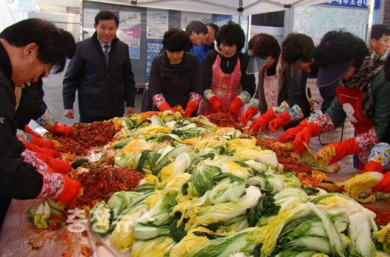 중촌동 주민센터에서도 22일부터 이틀간 자원봉사협의회 주관으로 자원봉사회원 및 유관단체 회원 30여명이 참여하여 배추 300포기로 ‘사랑나눔 김장담그기 행사’를 개최했다.