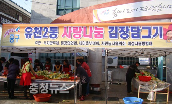 유천2동 주민센터도 20일부터 이틀간 유천2동 복지만두레를 비롯한 자생단체 연합으로 사랑의 김장담그기 및 나눔행사를 열어 추운 겨울나기에 꼭 필요한 김장김치를 어려운 이웃들을 위해 마련했다.