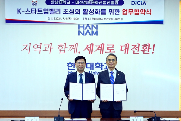[충청뉴스 이성현 기자] 한남대학교와 대전정보문화산업진흥원이 한국 대표 K-스타트업밸리 조성의 활성화를 위해 업무협약을 체결했다고 4일 밝혔다.
