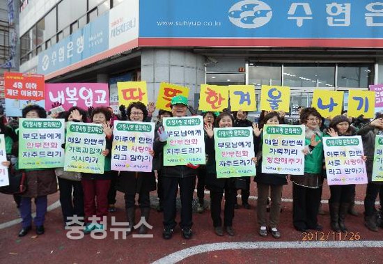 대전서구새마을부녀회(회장:전명자)는 26일 서구 용문 네거리에서 장일용 지회장을 비롯한 부녀지도자 50여명이 참석하여 동절기 전력난 해소를 위한 ‘2012 내복입고 온(溫)맵시 및 가정사랑 캠페인’ 활동을 실시했다.
