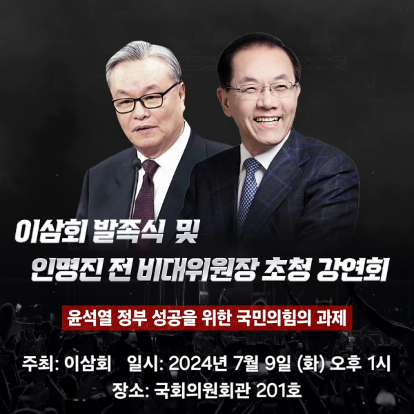 이삼회 출범식에는 황우여 국민의힘 비대위원장, 주호영 국회부의장(6선 국민의힘 대구수성구갑), 이철규 의원(3선 국민의힘 강원 동해시 태백시 삼척시 정선군) 등이 축사를 하고, 원희룡 국민의힘 당대표 후보 및 국회의원들이 내빈으로 참석하며, 인명진 전 비대위원장이 '윤석열정부 성공을 위한 국민의힘 과제'를 주제로 기념강연을 할 것으로 전해졌다.
