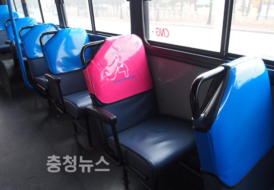 천안시는 출산 분위기 확산과 임산부의 편의를 증진하기 위해 관내 모든 시내버스 357대에 핑크색 임신부 전용좌석을 1석씩 설치했다고 밝혔다.