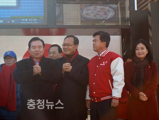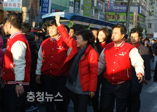 특히 박 후보의 이날 충청 방문에는 박성효, 이재선, 이장우, 홍문표, 김태흠 의원과 최근 합당한 선진통일당의 이인제 전 대표, 그리고 보수진영에 상당한 영향력을 발휘하고 있는 이회창 대표까지 지원유세에 나서 눈길을 끌었다.