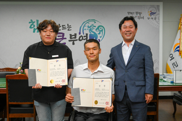 [충청뉴스 조홍기 기자] 부여군(군수 박정현)은 지난 8일 적극적이고 신속한 민원처리를 독려하기 위해 ‘민원처리 마일리지 우수공무원’ 2명을 선발해 표창했다고 밝혔다.