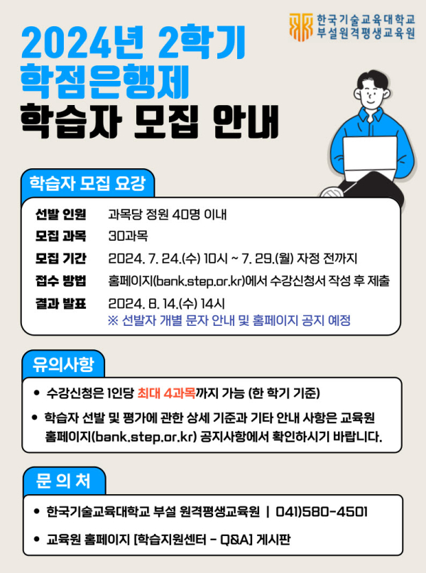 2024년 2학기 학점은행제 학습자 모집 안내문./한기대 제공