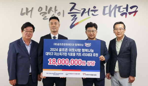 [충청뉴스 박영환 기자] 대전 대덕구(구청장 최충규)는 22일 ‘2024 골프존 이웃사랑 행복나눔’의 일환으로 (재)골프존문화재단(이사장 김영찬)으로부터 소외계층을 위한 식료품 꾸러미(1800만원 상당)를 기탁받았다고 밝혔다.