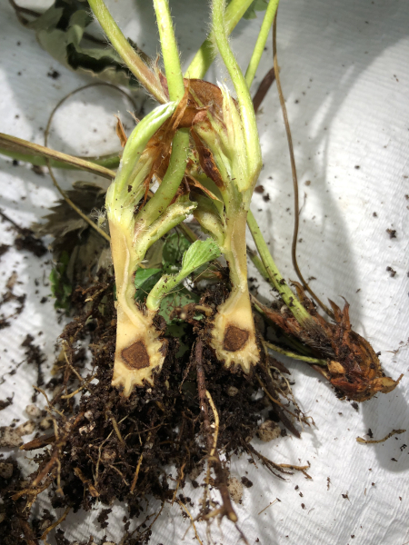 식물체의 상처로 인한 감염을 막기 위해서는 줄기(런너) 분리 및 잎 제거 작업은 비가 내리지 않을 때나 장마철 이후로 미루는 것이 병 발생을 최소화하는 데 도움이 된다.