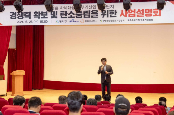 또한 지난 6월에는 평촌특화단지 입주기업협회 및 (사)신탄진 중소기업협회 업체를 대상으로 RE100 사업설명회를 개최했다. 구는 단지 내 입주기업 등을 대상으로 지붕과 유휴부지에 신재생에너지 발전설비 설치를 추진할 예정이다.