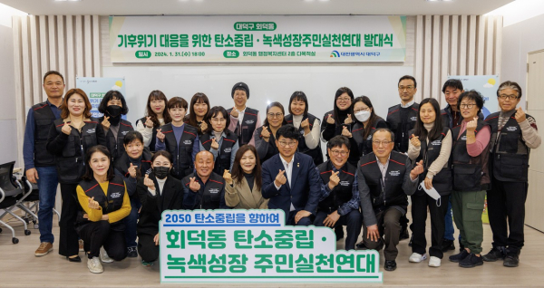 최충규 대덕구청장은 “집중호우, 폭염 등 기후위기는 이제 우리 모두에게 당면한 중요 문제이자 책임”이라며 “대덕구도 탄소중립 실천을 위해 앞장서겠다. 시민 여러분들께서도 기후위기 극복을 위한 탄소중립 실천에 동참해 주시길 바란다”라고 당부했다.