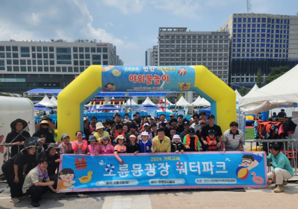 [충청뉴스 최형순 기자] 천안시장애인가족지원센터(센터장 계형국)은 천안시와 천안도시공사와 연계하여 여름을 맞이하여 천안시서 운영하는 오륜문광장에서“한여름의 워터파크”를 5일 진행했다.