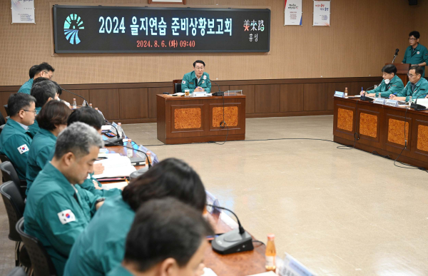 [충청뉴스 권상재 기자] 홍성군은 6일 군청 회의실에서 이용록 홍성군수 주재로 담당관, 과장, 관계 공무원 등 30여 명이 참석한 가운데 ‘2024년 을지연습 준비상황 보고회’를 개최하고 을지연습의 성공적 수행을 위한 세부 계획을 논의했다.