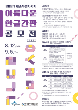 [충청뉴스 최형순 기자] 세종시가 옥외광고물의 수준 향상과 올바른 광고 문화 정착을 위해 추진하는 ‘2024 아름다운 한글 간판 공모전’을 오는 9월 5일까지 연장한다.