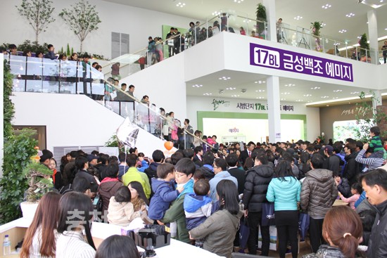 금성백조는 지난 11월 16일 모델하우스를 오픈하고 주말까지 3일간 4만여명이 방문하는 등 많은 인파가 몰려 모델하우스 안을 꽉 메우고 밖에는 길게 줄이 늘어서는 진풍경을 보였다.