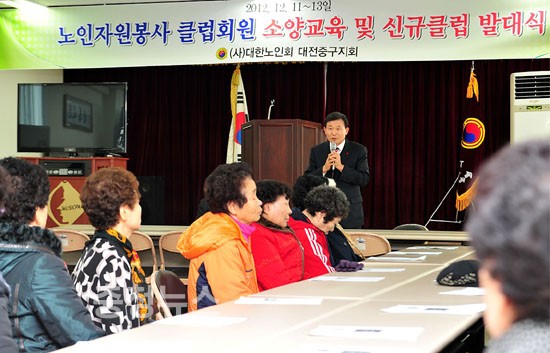 대전광역시 중구 노인회는 노인회 중구지회 강당에서 11일부터 13일까지 노인자원봉사 20개 클럽 396명의 회원을 대상으로 소양교육을 실시했다.